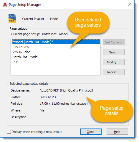 Jump to the following sections to learn how to create AutoCAD Page Setups.