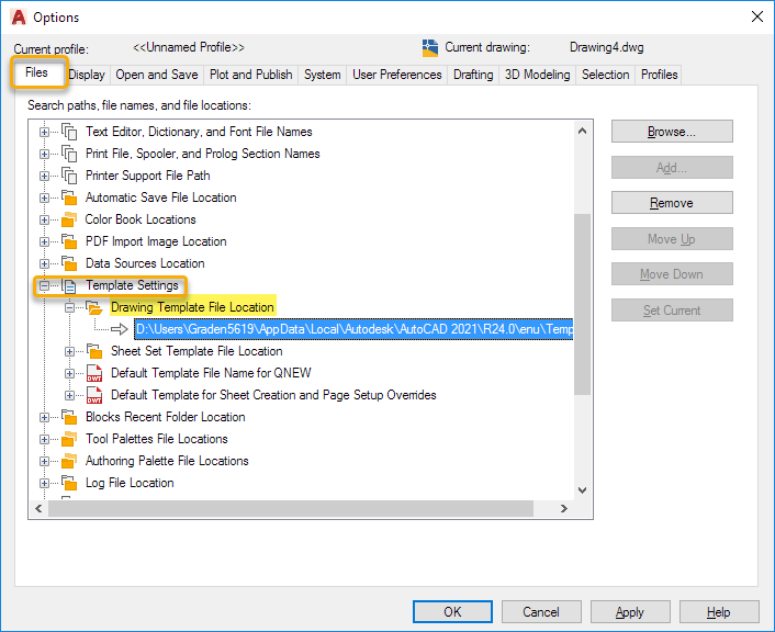 The easiest way to determine where AutoCAD saves its template files on your computer is from within the program itself.